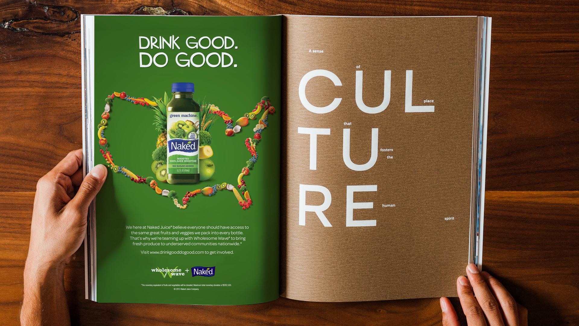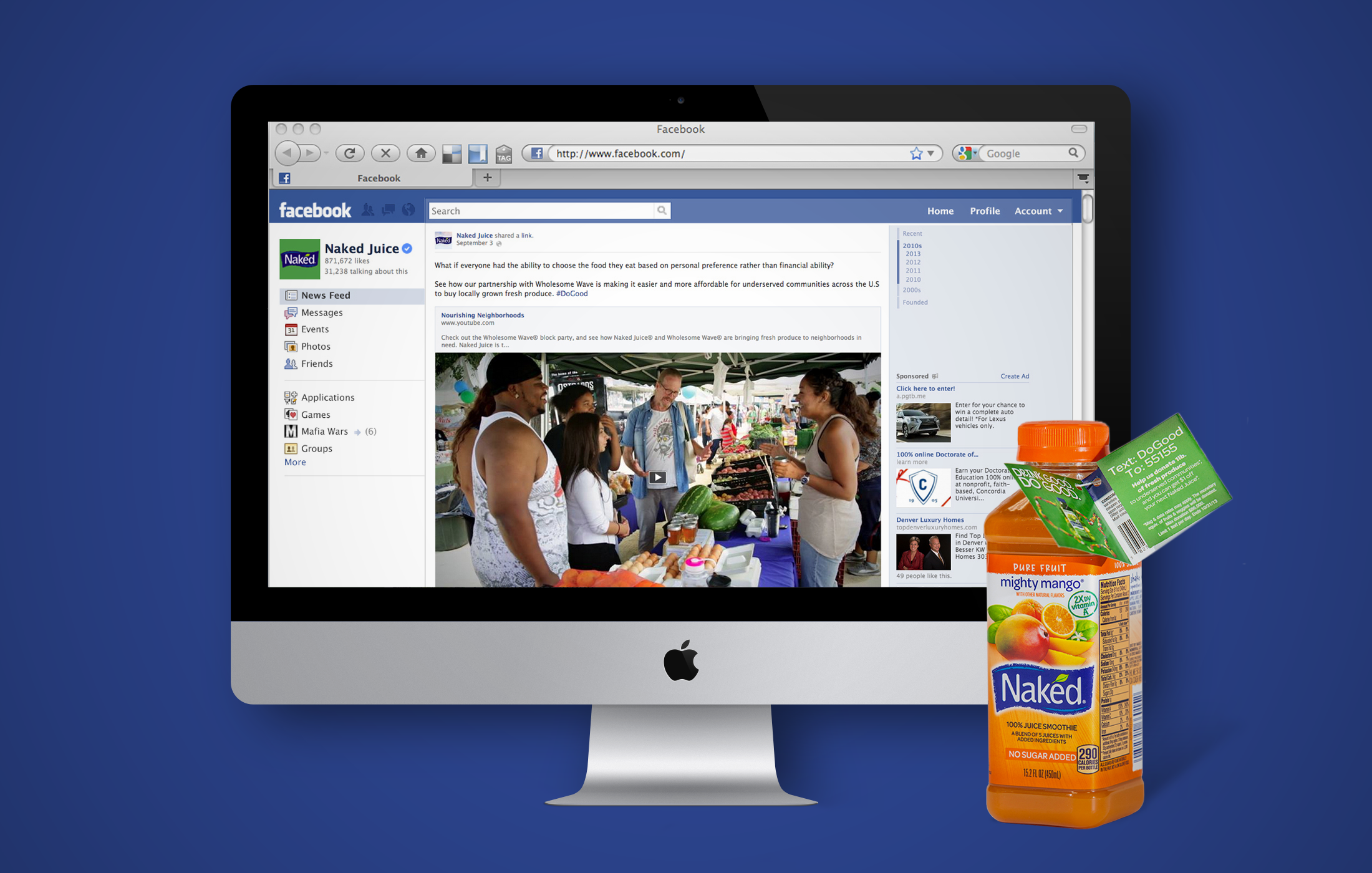 Drink Good. Do Good. rolled out on a national level. A three-part documentary series educated viewers on the importance of accessibility to healthy food, while grassroots events brought the message to a local level. With the click of a finger, Naked Juice drinkers everywhere began sending pound after pound of produce to Food Deserts.